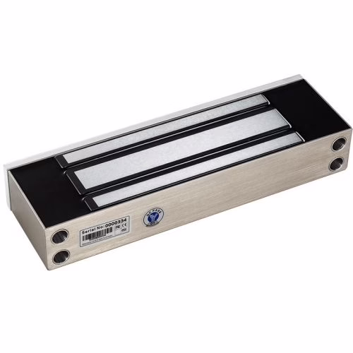 Vår magnetlås er en sterk lås designet for bruk på skyveporter, slagporter, branndører, etc. Den har en holdekraft på 280 kg. Magnetlåsen har IP-klasse 68 og kan brukes både utendørs og innendørs. Låsen har et LED-signal som lyser rødt hvis den er låst og grønn hvis den er ulåst