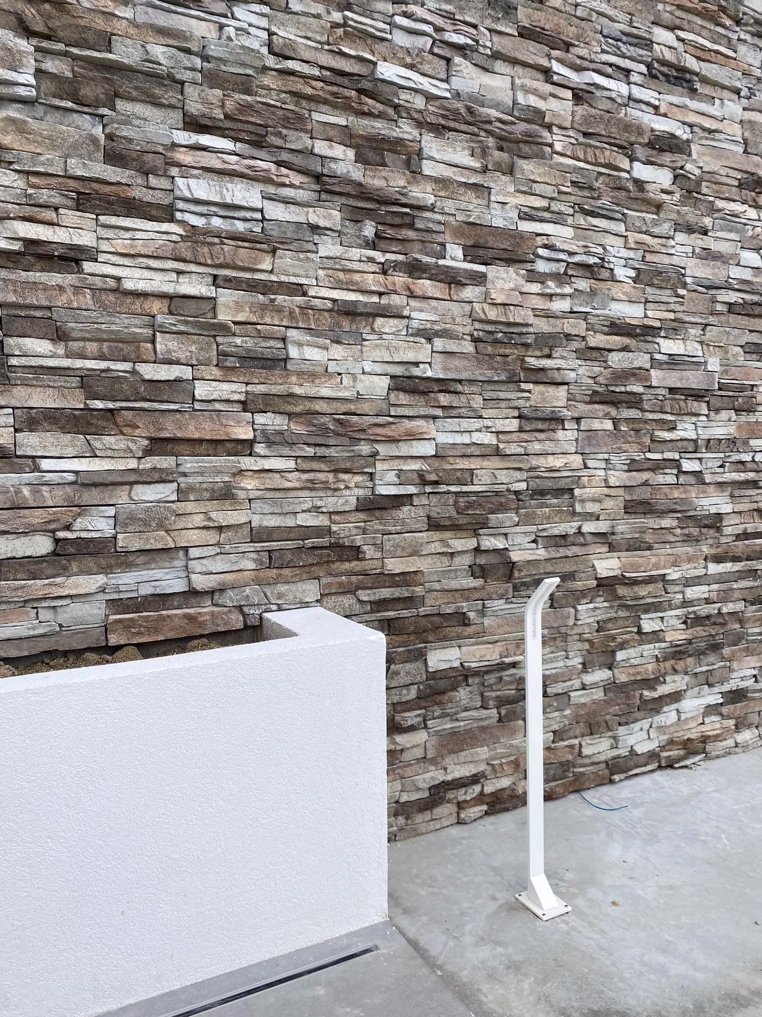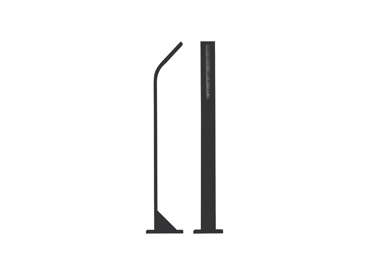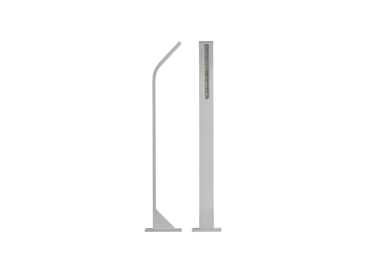 Ledbelysning riktad snett nedåt. Vit armatur. 75cm hög.
