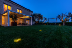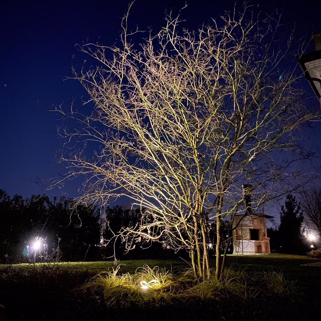 Spotlight som kan sättas direkt i marken för att t ex lysa upp trädkronor eller husväggar.
